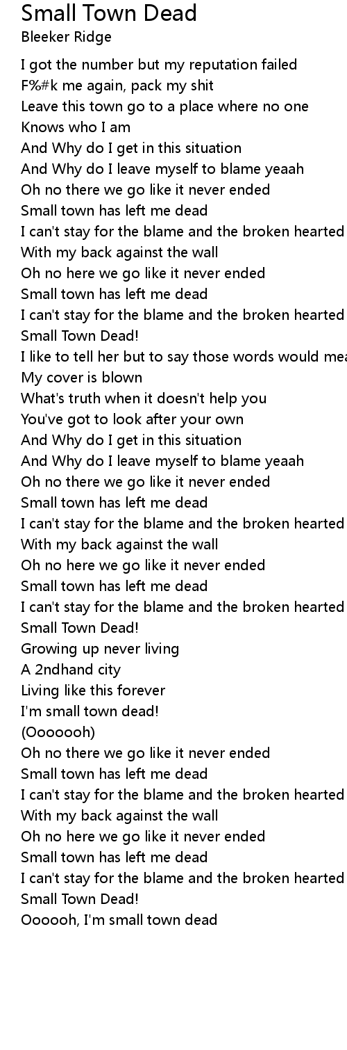 Oooooh, I'm small town dead |