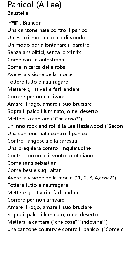 | [01:41.750] | un inno rock and roll à la Lee Hazlewood ("Seconda strofa") |