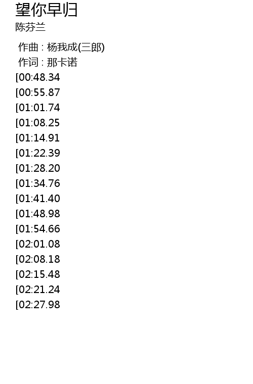 | [04:27.39][02:27.98] | 希望你早一日回来 |