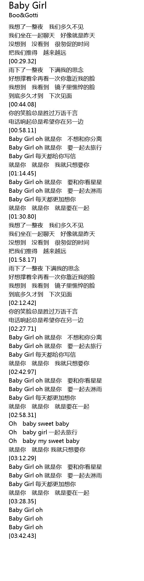 | [03:34.69] | Baby Girl oh |
