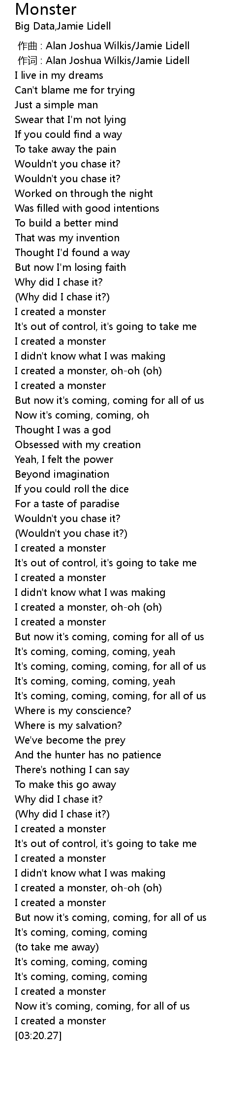 | [00:59.82] | I created a monster, oh-oh (oh) |