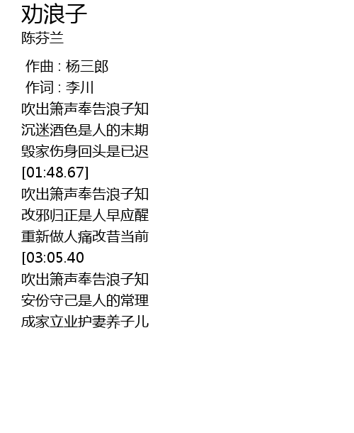 | [03:35.00] | chuī chū xiāo shēng fèng gào làng zǐ zhī |