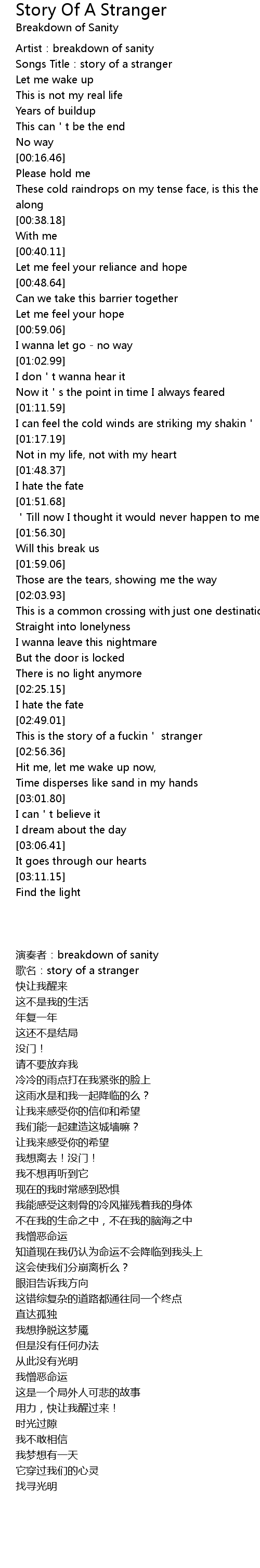 | [00:03.91] | Songs Title: story of a stranger |