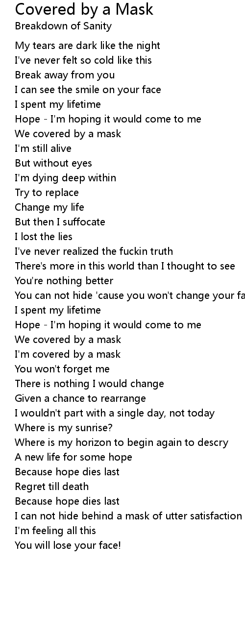 I'm covered by a mask |
