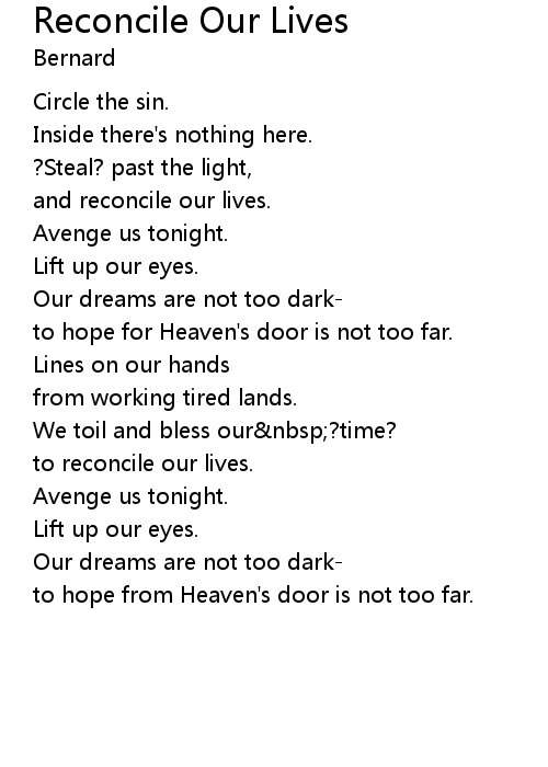 | and reconcile our lives. | |