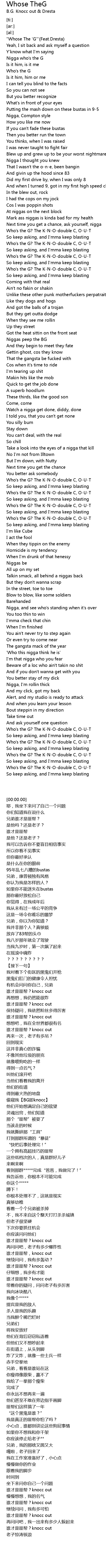 Who's the G? The K-N-O-double C, O-U-T |