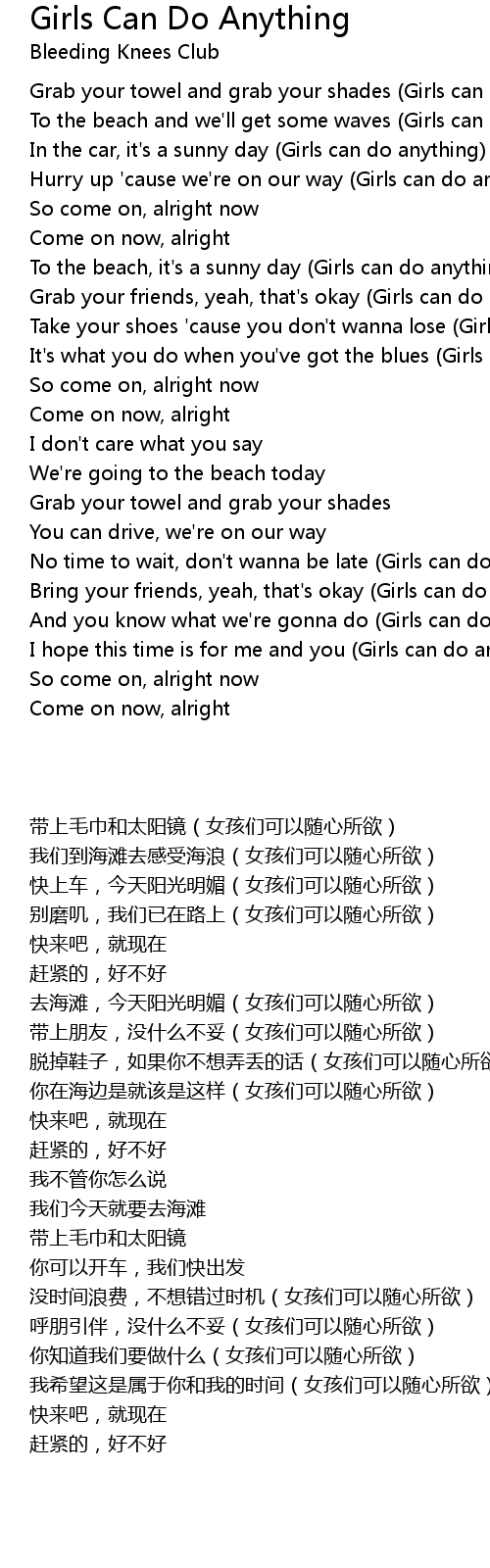 Take your shoes 'cause you don't wanna lose (Girls can do anything) |