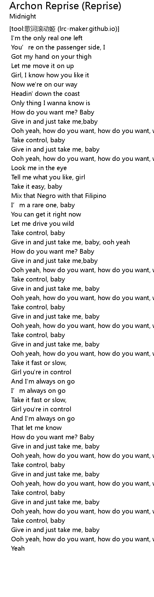 | [01:36.535] | Ooh yeah, how do you want, how do you want, want |