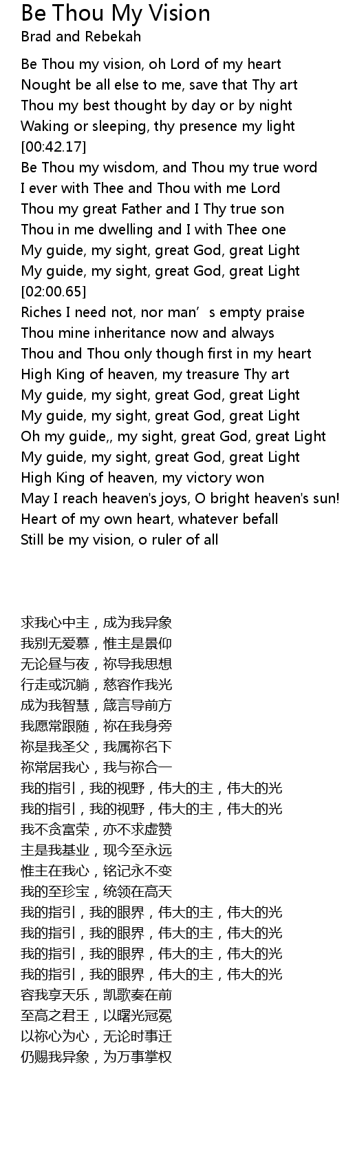 | [00:01.69] | Be Thou my vision, oh Lord of my heart |
