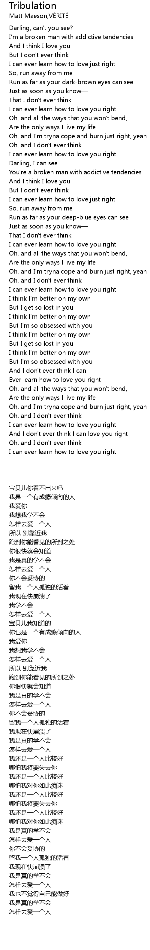| [00:14.39] | I' m a broken man with addictive tendencies |