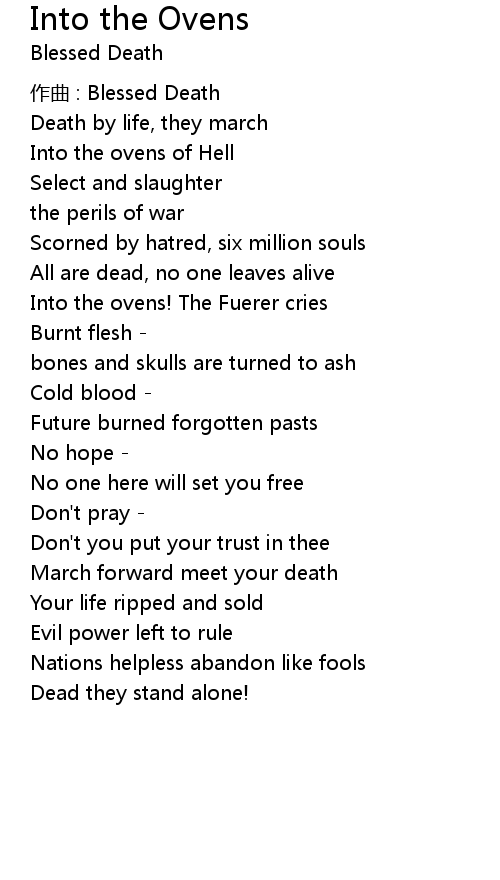| Into the ovens! The Fuerer cries | |