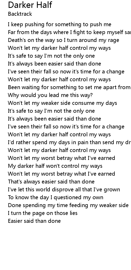 My darker half won't control my ways |