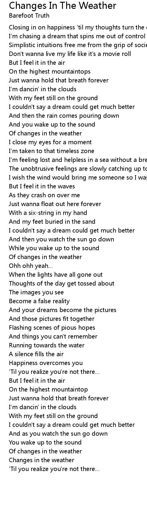 | Song | Changes In The Weather |