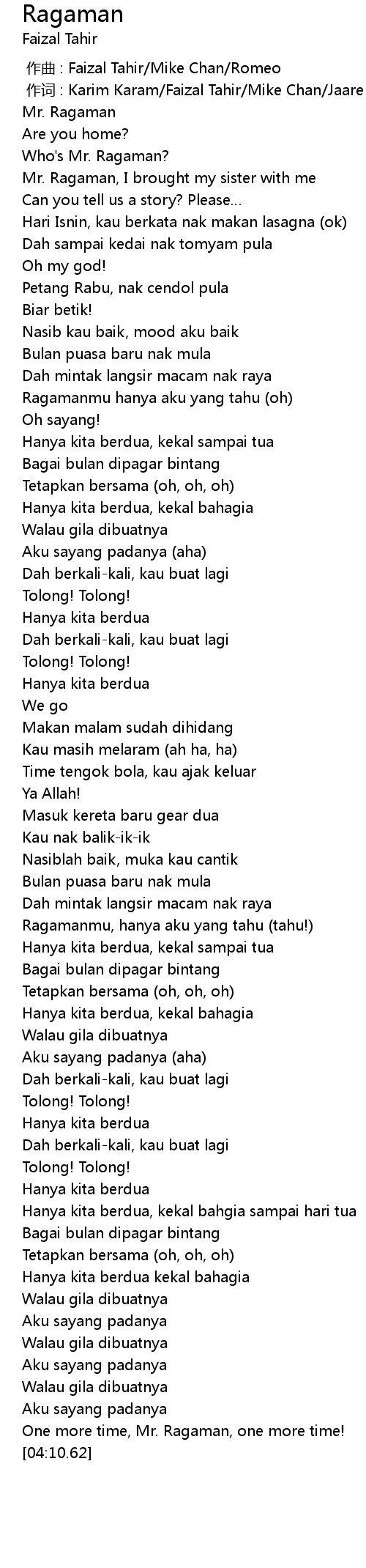 | [00:00.000] | zuò qǔ : Faizal Tahir Mike Chan Romeo |