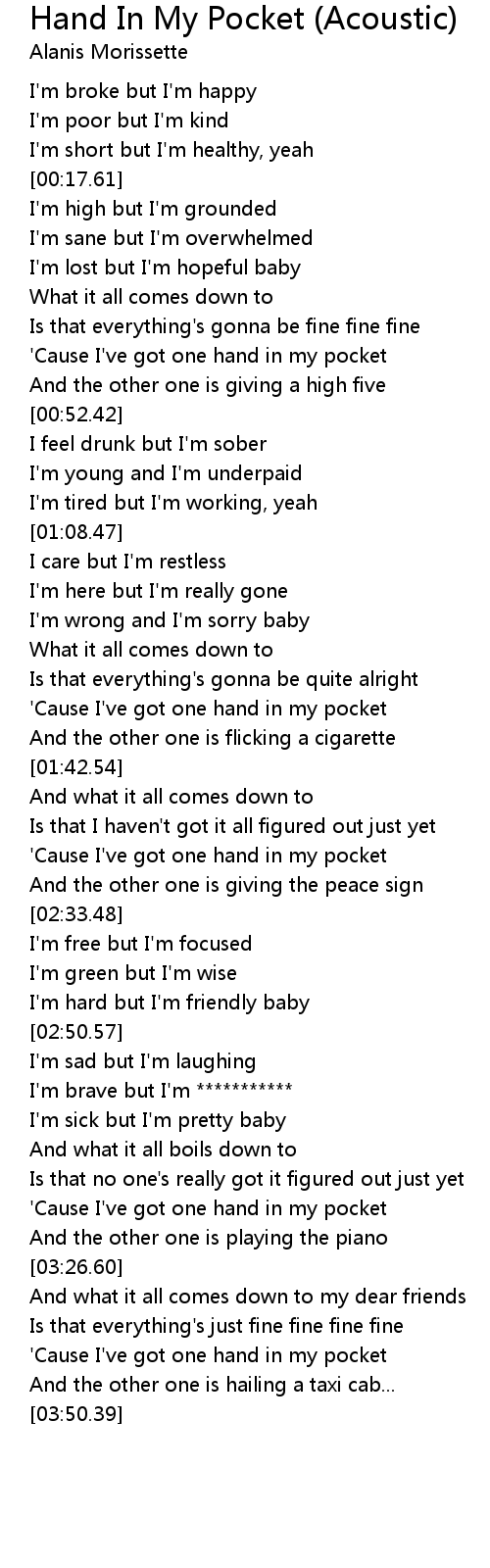 'Cause I've got one hand in my pocket |