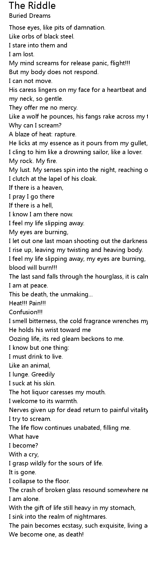 I feel my life slipping away, my eyes are burning, having this torment my life blood will burn!!! |