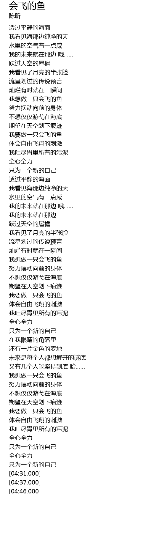 | [03:50.000] | 我要做一只会飞的鱼 |