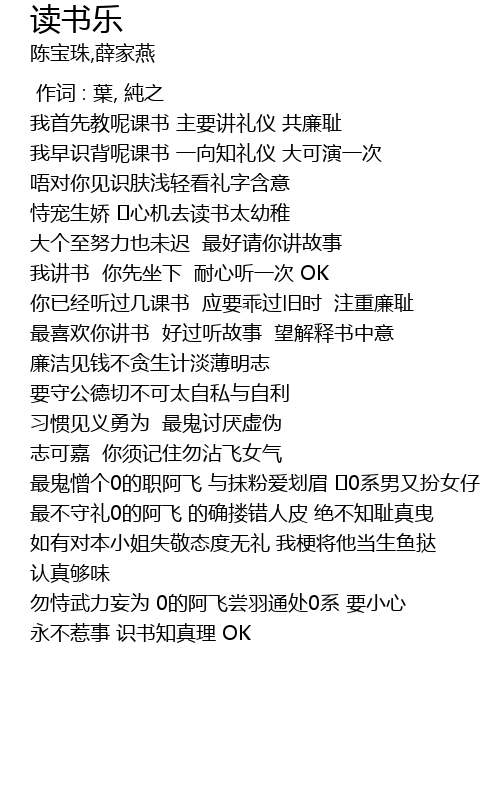 | [02:28.36] | 最鬼憎个0的职阿飞 与抹粉爱划眉 �0系男又扮女仔 |