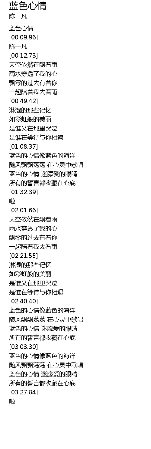 | [03:17.70] | 蓝色的心情 迷朦爱的眼睛 |