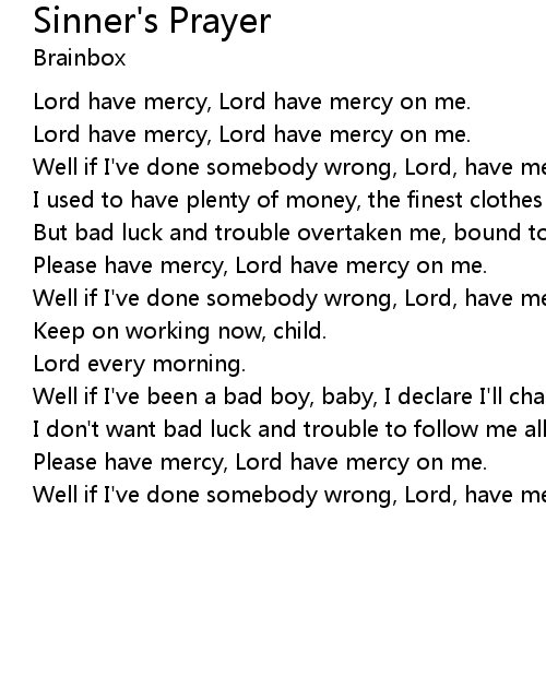 | Well if I've done somebody wrong, Lord, have mercy if you please. | |