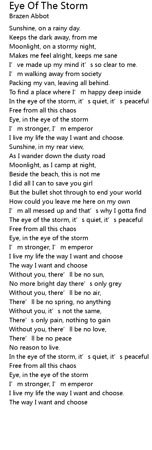 | [00:41.90] | In the eye of the storm, it’s quiet, it’s peaceful |