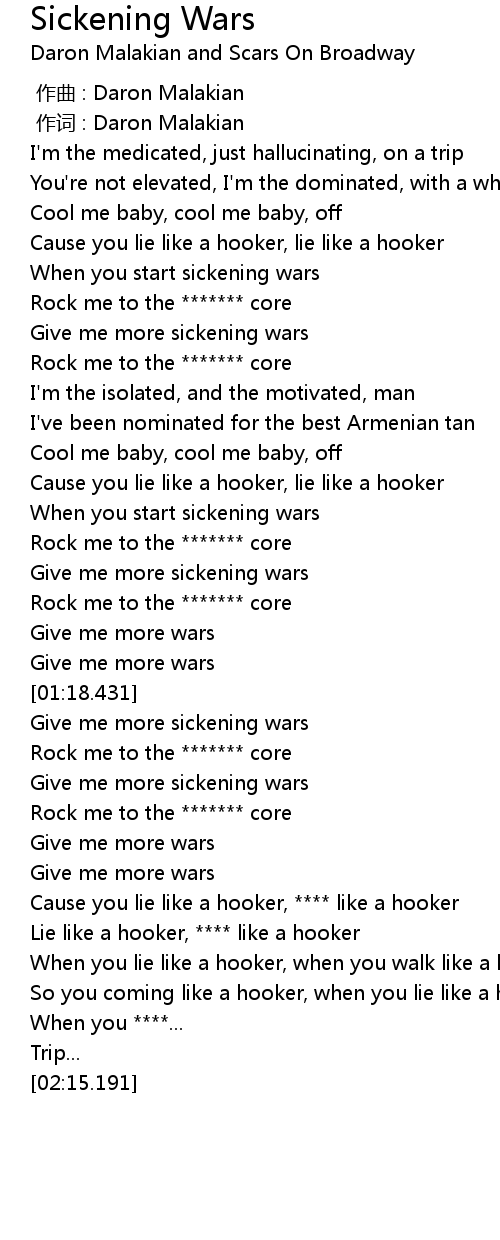 | [00:01.000] | 作词 : Daron Malakian |