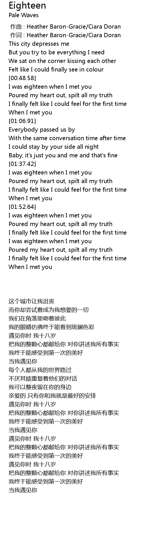 | [00:51.81] | I was eighteen when I met you |