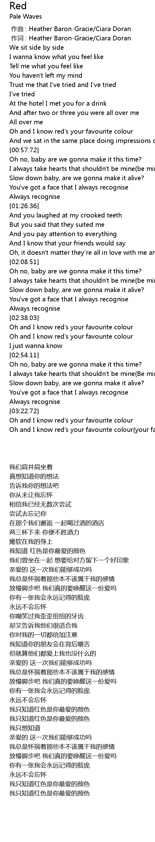 | [03:22.76] | Oh and I know red's your favourite colour |