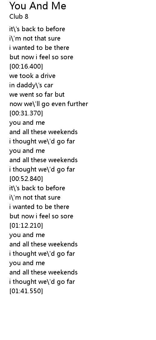 | [01:22.960] | you and me |