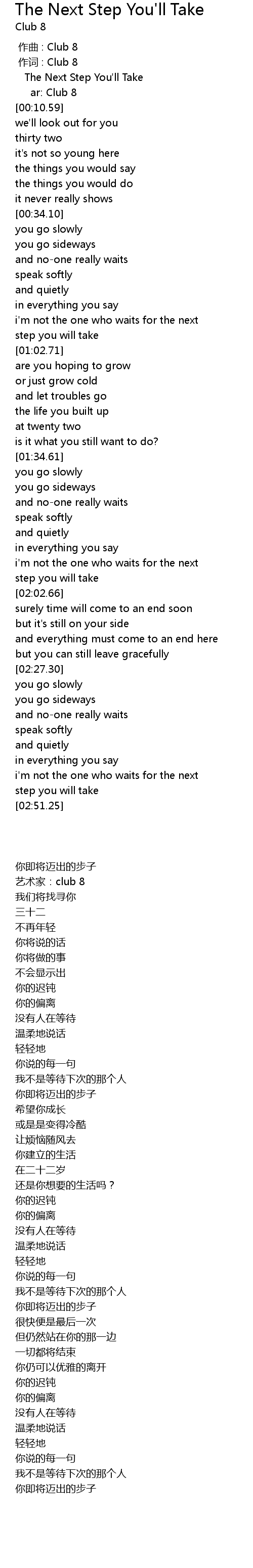 | [00:00.00] | zuo qu : Club 8 |