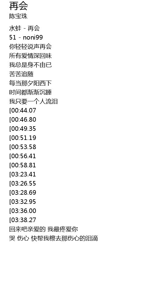 | [03:02.85] | 回来吧亲爱的 我最疼爱你 |
