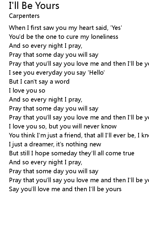 Pray that you'll say you love me and then I'll be yours |