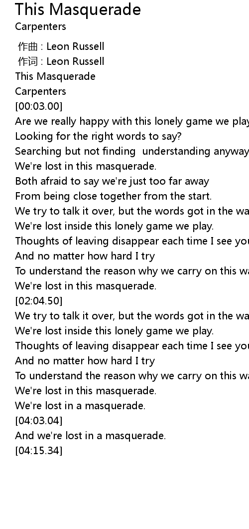 | [03:43.54] | We' re lost in this masquerade. |