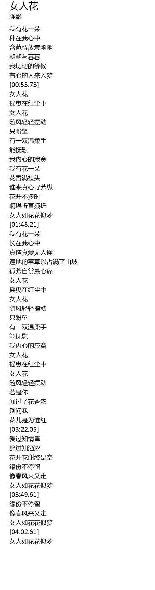 | [04:03.25] | 女人如花花似梦 |