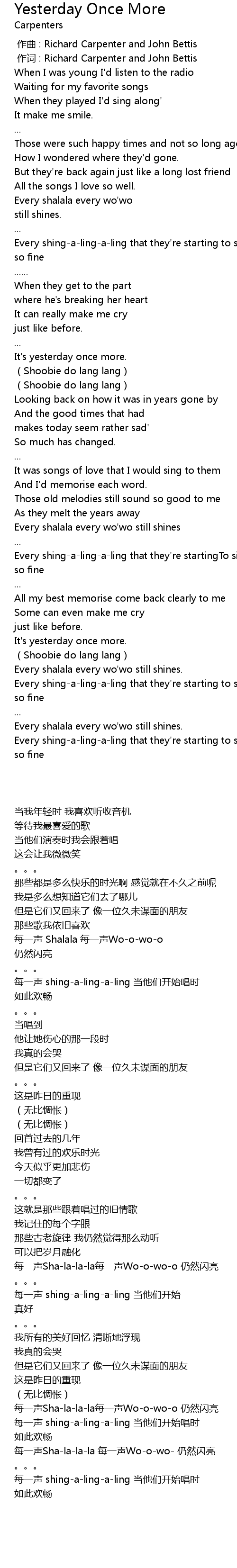 | [00:00.00] | 作曲 : Richard Carpenter and John Bettis |