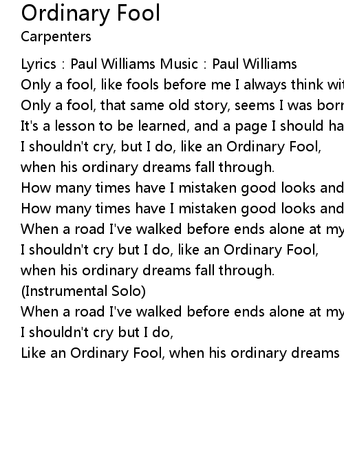 | I shouldn't cry but I do, like an Ordinary Fool, | |