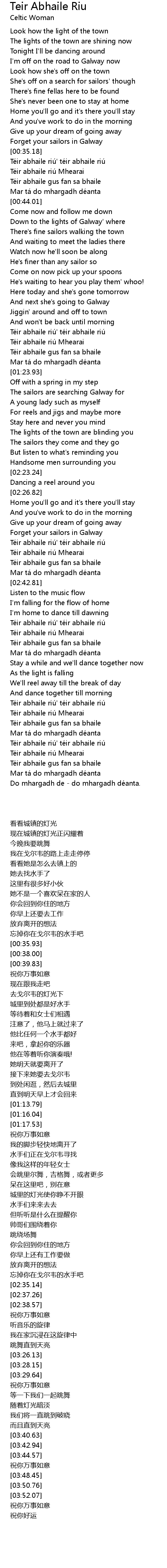 | [00:35.93] | Téir abhaile riú' téir abhaile riú |