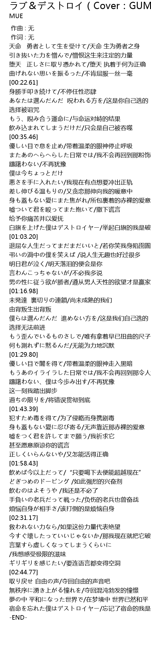 | [02:55.84] | 宿命を忘れた僕はデストロイヤー/忘记了宿命的我是破坏者 |