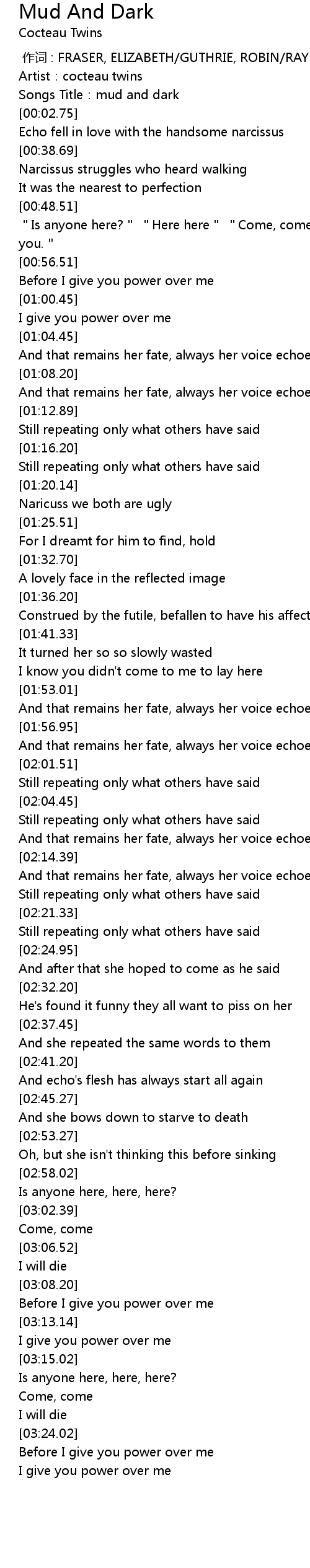 | [00:40.64] | Narcissus struggles who heard walking |