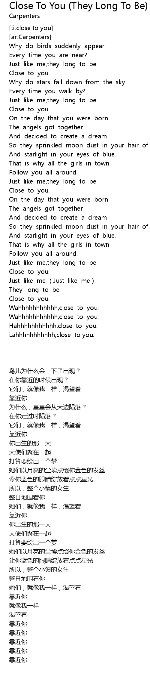 | [03:32.292] | Lahhhhhhhhhhh,close to you. |