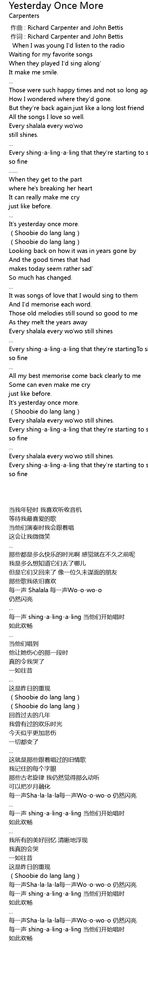 | [00:01.00] | 作词 : Richard Carpenter and John Bettis |