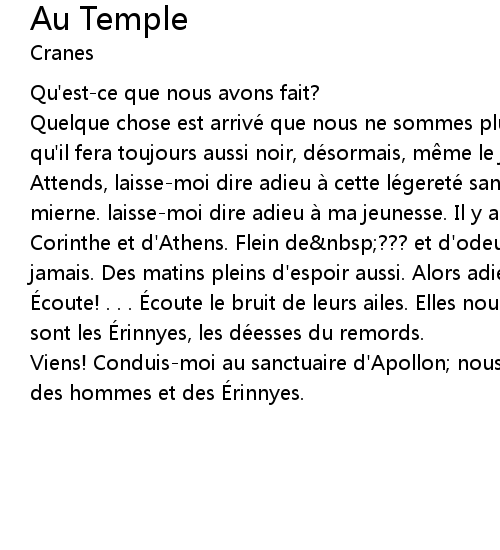 | Attends, laissemoi dire adieu à cette lé gereté sans t che qui fut la mierne. laissemoi dire adieu à ma jeunesse. Il y a des soirs, des soirs de | |