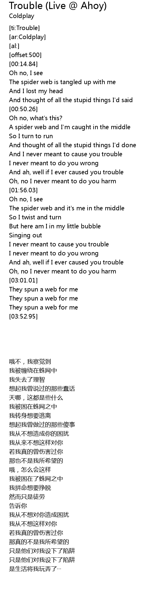| [02:36.04] | I never meant to cause you trouble |