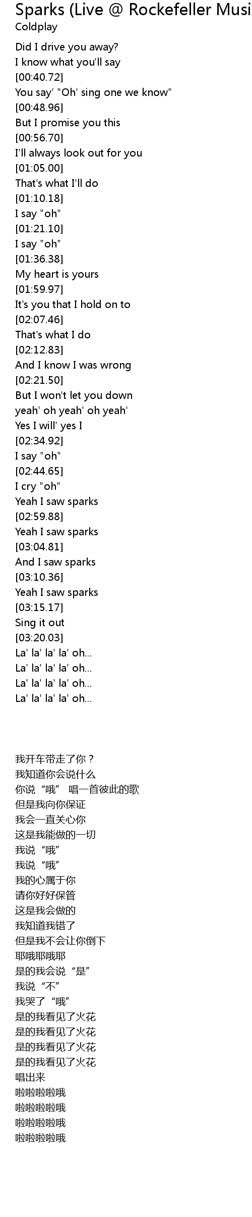 Yeah I saw sparks |