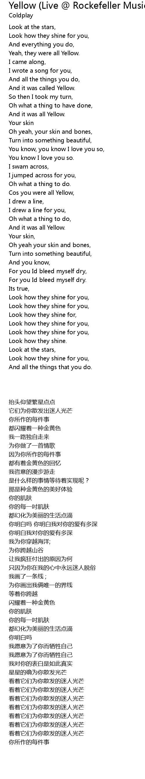 Cos you were all Yellow, |