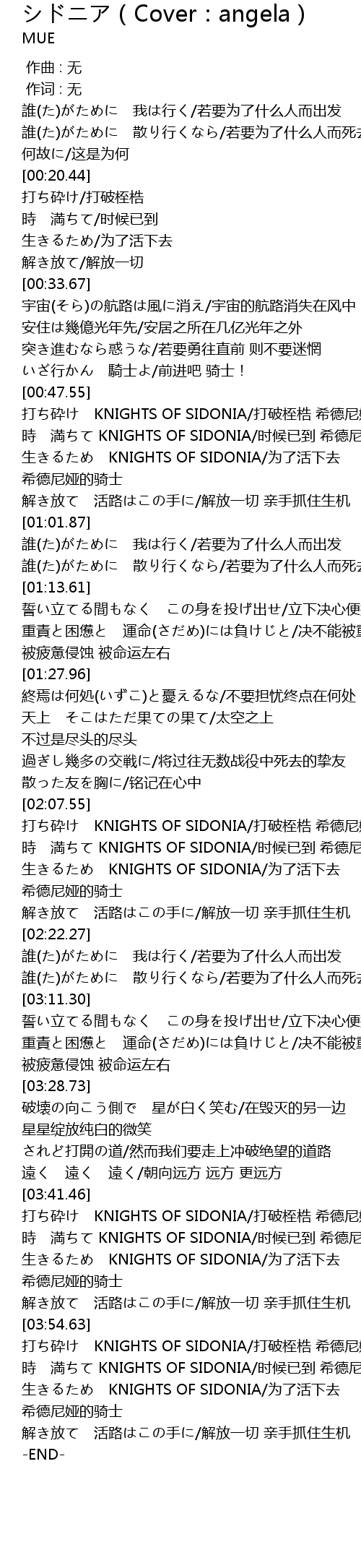 | [03:57.76] | 時 満ちて KNIGHTS OF SIDONIA/时候已到 希德尼娅的骑士 |