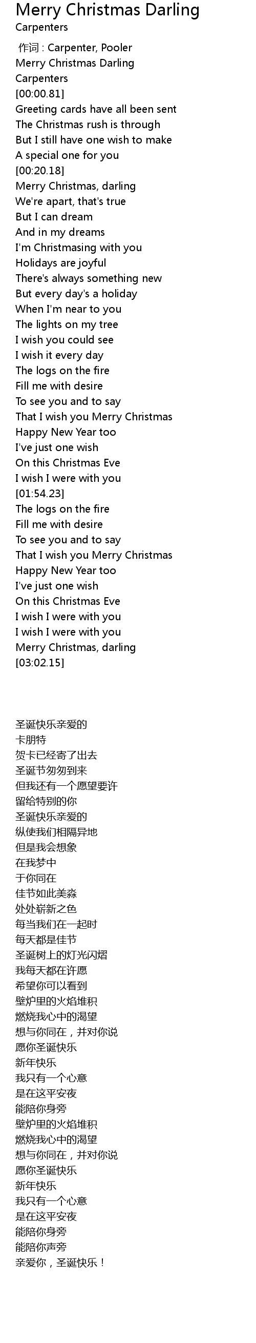 | [00:00.20] | Merry Christmas Darling |