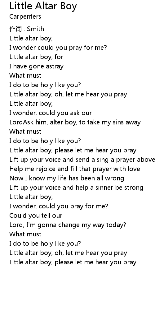 | Little altar boy, please let me hear you pray | |