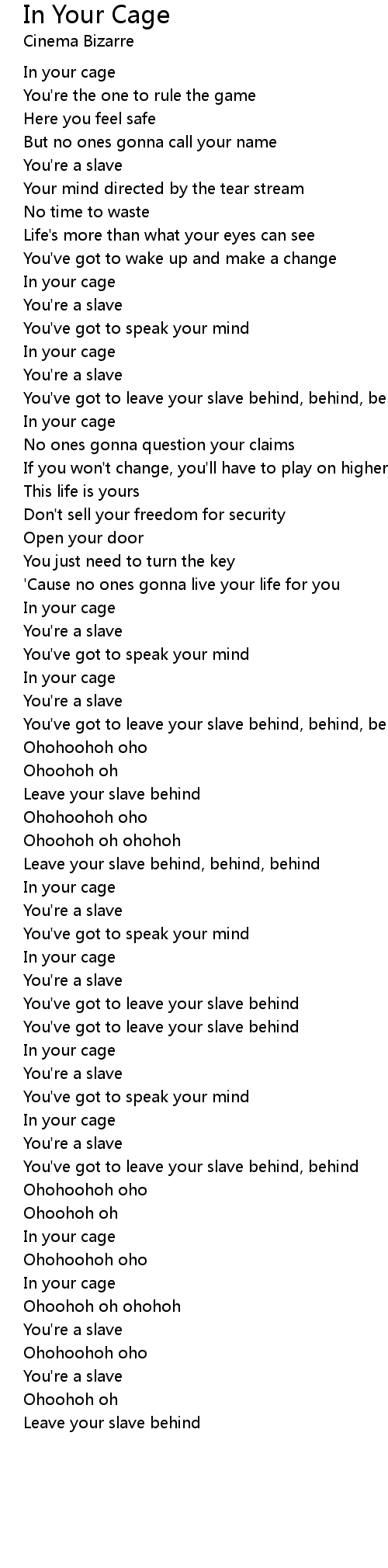 You've got to leave your slave behind, behind, behind |