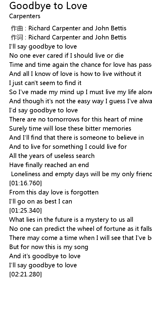 | [02:10.680] | And it' s goodbye to love |